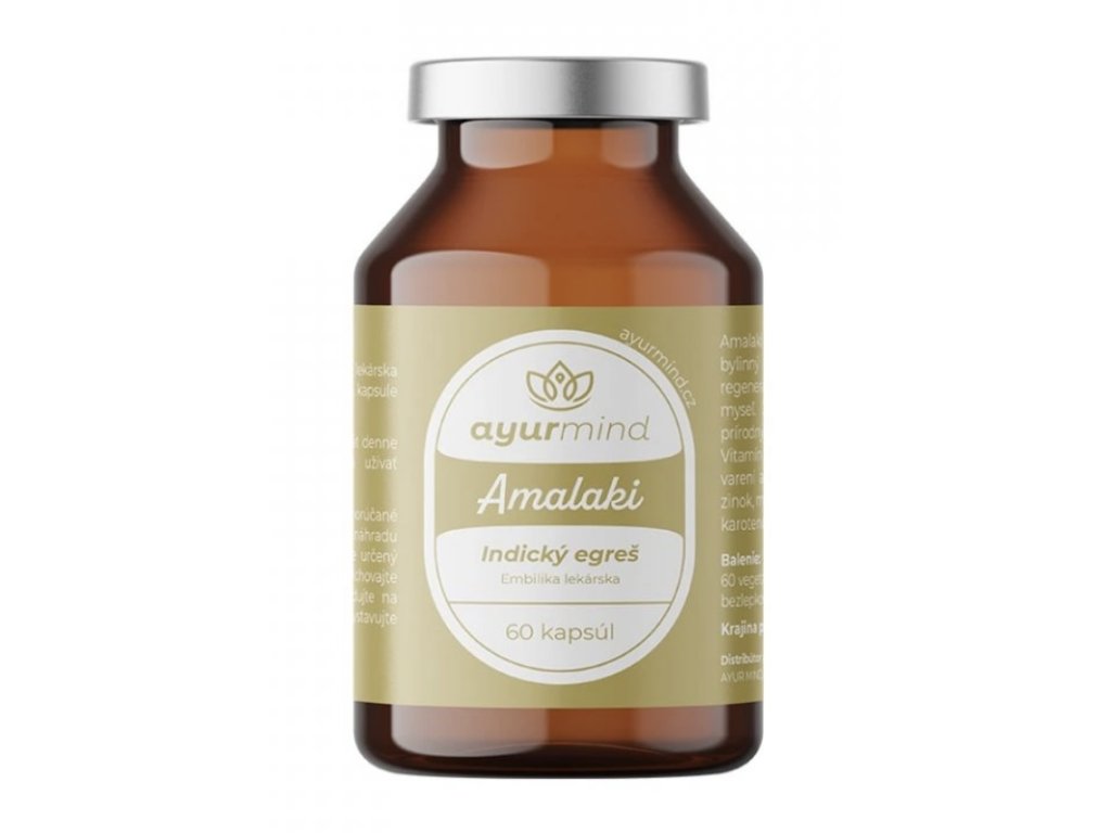 Amalaki - indický angrešt je přírodní bylinný přípravek s blahodárnými regeneračními účinky na tělo i mysl. Je jedním z nejbohatších přírodních zdrojů vitaminu C. Vitamin C zůstává v Amalaki i po uvaření a usušení. Dále obsahuje chrom, zinek, měď, aminokyseliny, flavonoidy a karotenoidy.