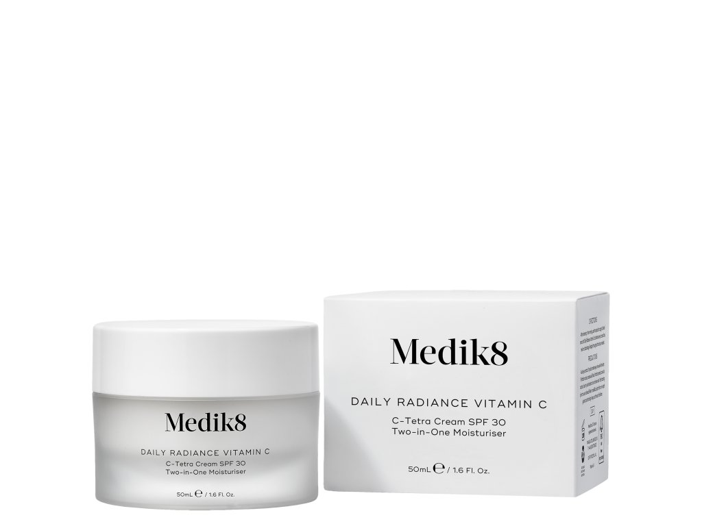 Donedávna, pokud jste pleti chtěli poskytnout vitamín C a chránit ji před slunečními paprsky, museli jste aplikovat dva produkty – sérum s vitamínem C a na něj ochranný krém. Nyní však můžete díky vitamínovému krému DAILY RADIANCE VITAMIN C tyto dva kroky spojit. Jako jediný z hydratačních krémů s SPF od Medik8 obsahuje navíc kyselinu hyaluronovou.