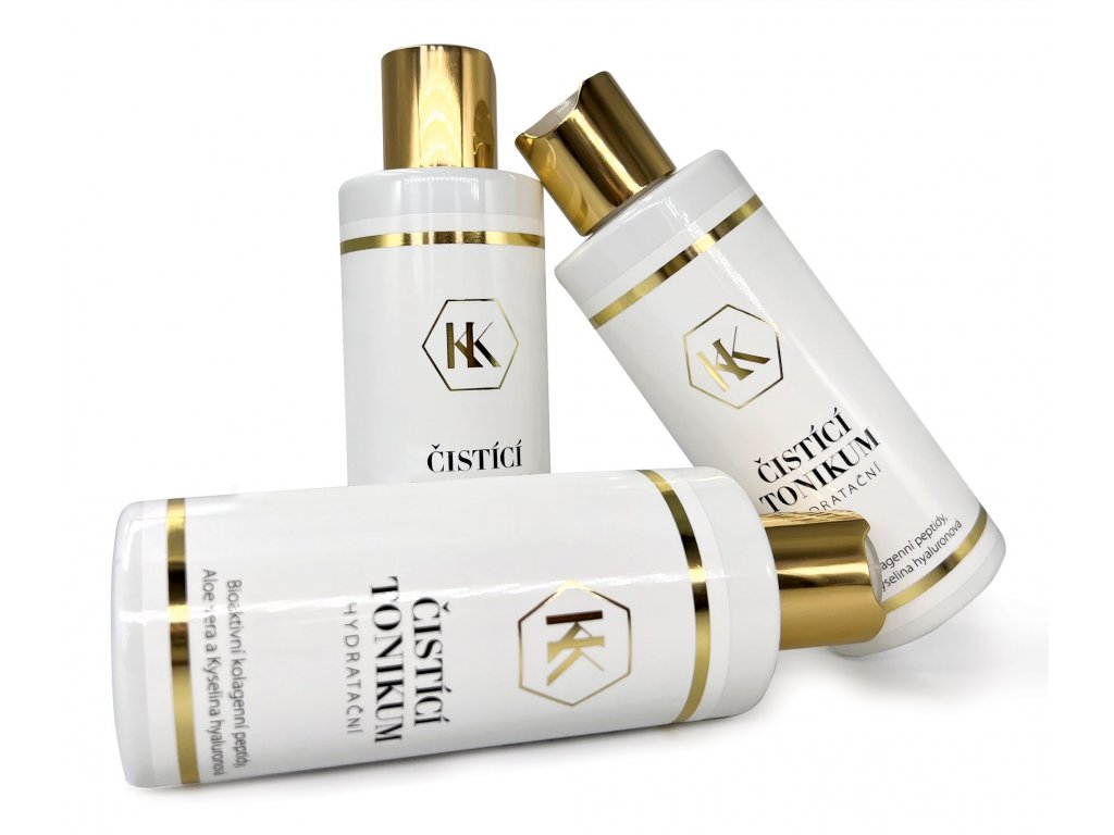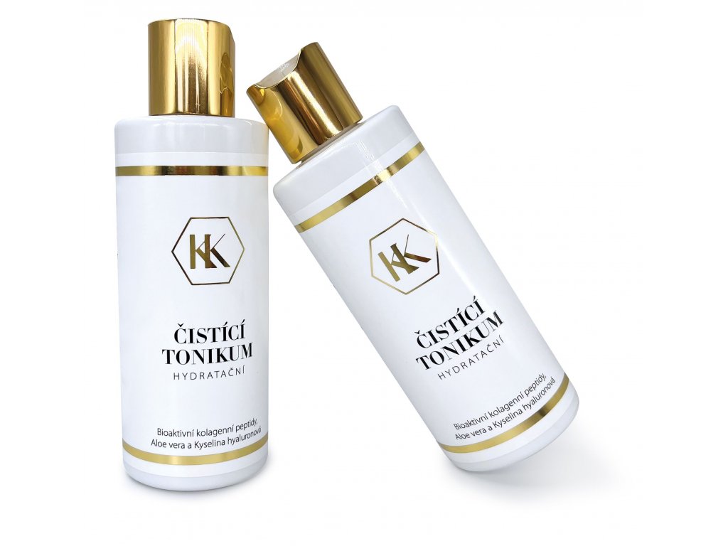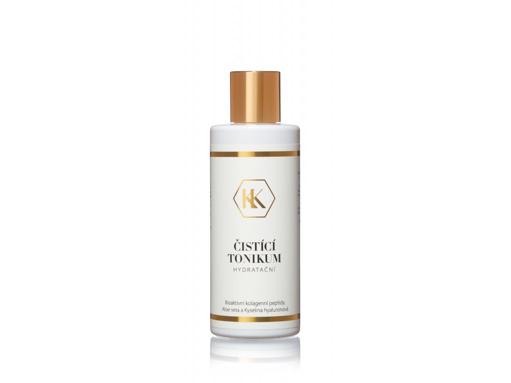 Čistící hydratační tonikum KK účinně odličuje všechny typy pokožky. Aloe vera, kyselina hyaluronová, kolagenní peptidy a panthenol zanechávají pleť pružnou, tonizovanou a dokonale hydratovanou. Peptidy vaši pokožku stimulují pro lepší buněčnou obnovu a tím jí zprostředkují omlazující účinek, posilují pokožku a zvyšují její odolnost vůči mnoha faktorům sucha a předčasného stárnutí pokožky. Pleť krásně vyčistí a rozjasní.