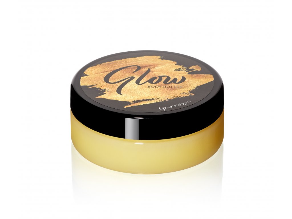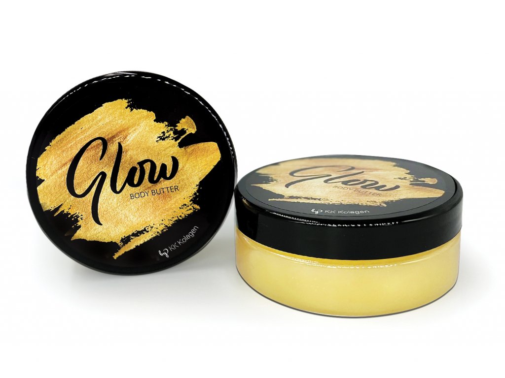 Díky tělovému máslu KK Glow konečně dosáhnete krásné zlatavé pokožky. Vysoký obsah vitamínů A, E, F a antioxidačních látek pokožku hydratuje, navrací její pružnost, redukuje vrásky a pomáhá udržet mladistvý vzhled. Jednotlivé složky podporují tvorbu kolagenu v těle a zpomalují stárnutí pleti.
