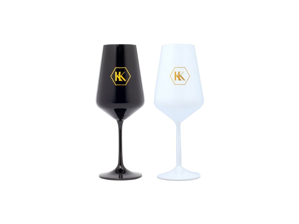 Elegantní sklenice na KK Kolagen v bílém nebo černém provedení, v čirém provedení nebo čirá s bílou stopkou a čirá s černou stopkou. Tato sklenice umocní požitek z pití vašeho oblíbeného nápoje.