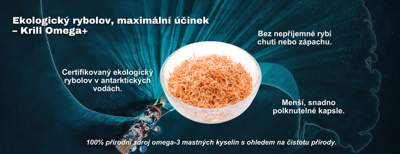 Exkluzivní doplněk stravy Krill Omega+ obsahuje krilový olej nejvyšší kvality získaný z ekologického rybolovu v křišťálově čistých vodách Antarktického oceánu.
