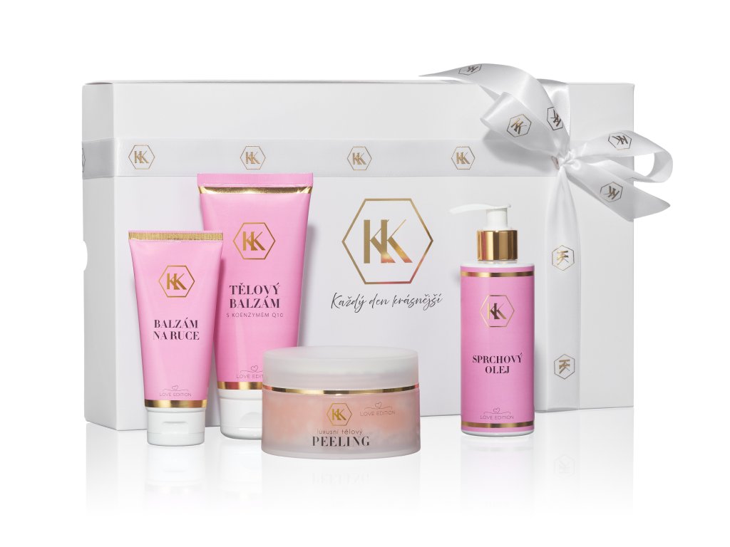 Balíček z Love edice vás nadchne úžasnými 4 produkty jako je náš Luxusní tělový peeling, zpevňující krém s koenzymem Q10, balzám na ruce a úžasný sprchový olej a to vše zabaleno v nádherné jednoduché a přitom luxusní dárkové krabici. Oslavte každý den jako nový začátek s těmito produkty založenými na okouzlující květinové vůni flirt. Tato úžasně květinová vůně vás potěší, pohladí a provoní vaše tělo i celou koupelnu.