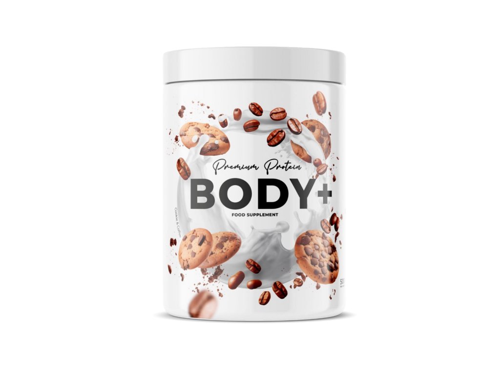 Premium Protein BODY+ je obohacen o patentovaný enzymatický komplex DigeZyme®. Produkt je bez přídavku cukru, obsahuje stévii a liofilizované kousky cookies a kávy, které přidávají jedinečnou chuť a zlepšují konzistenci. Premium Protein BODY+ se velmi hodí jako přídavek do shake'ů, pečení nebo fitness dezertů.