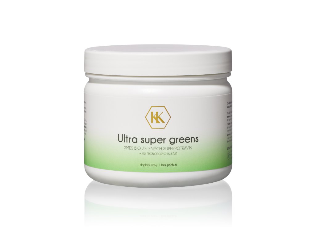 Ultra Super Greens je komplexní směs bio zelených superpotravin s komplexem Probiotik - 10 miliard kultur z 10 různých kmenů probiotik, které podporují rovnováhu střevní mikroflóry.Umožňuje snižovat chuť k jídlu a přispívat ke kontrole hmotnosti.Dopomáha zlepšovat trávicí funkce a řeší problémy s nadýmáním či nafouklým břichem. Velmi silný antioxidant plný vitamínů a minerálů. Svěle se rozpouší a díky vysokému podílu Bio ječmene má přijemnou a velmi jemnou chuť. Dopřejte svému tělu každodenní dávku energie a vitality. Naše produktové složení obsahuje výhradně nejkvalitnější složky a probiotika, která podporují zdraví střev a celkovou pohodu.