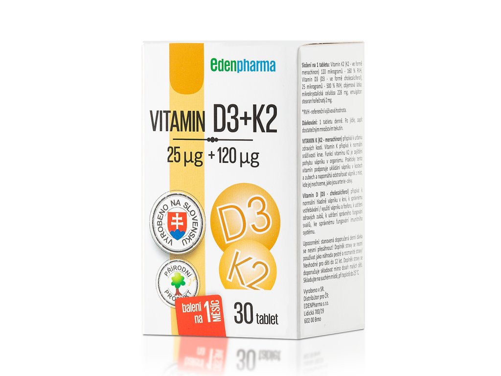 Doplněk stravy s vitamínem D3 a vitamínem K2. Přispívá ke správné funkci imunitního systému, udržení normálního stavu kostí a správnému využití vápníku v organismu.